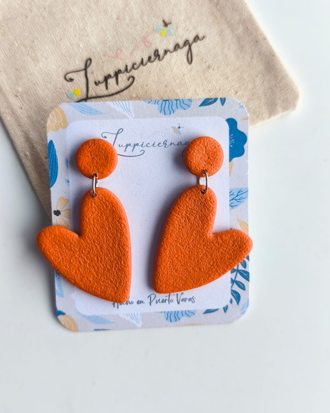Aros diseñados y confeccionados a mano en arcilla polimérica. Cada par pasa por un proceso cuidadoso de modelado, horneado y ensamblaje, lo que da como resultado piezas originales y llenas de carácter.