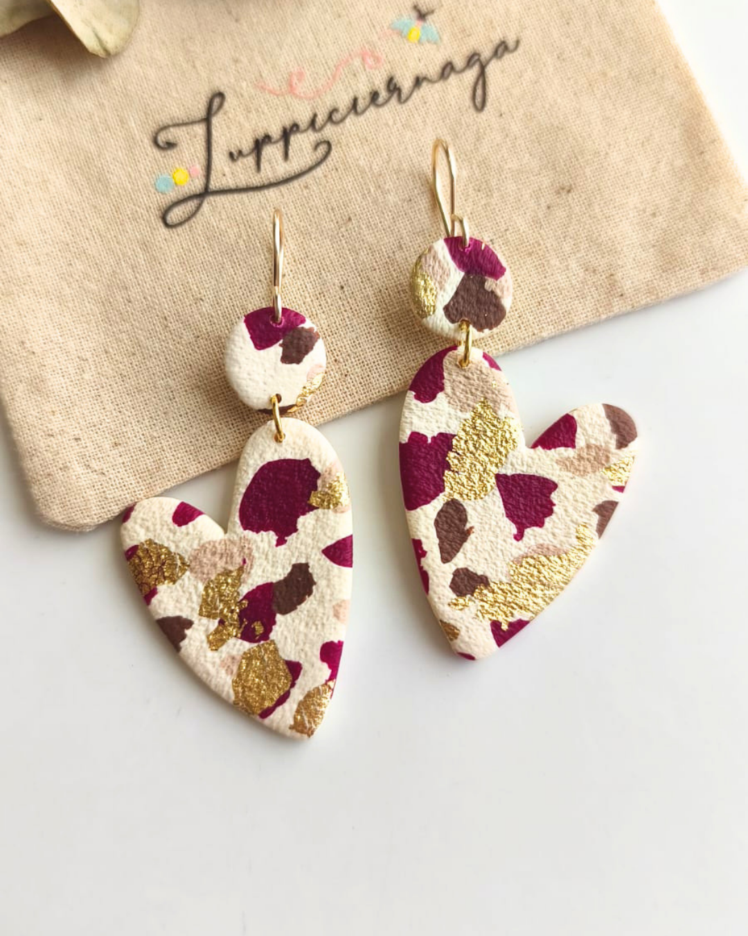 Aros diseñados y confeccionados a mano en arcilla polimérica. Cada par pasa por un proceso cuidadoso de modelado, horneado y ensamblaje, lo que da como resultado piezas originales y llenas de carácter.