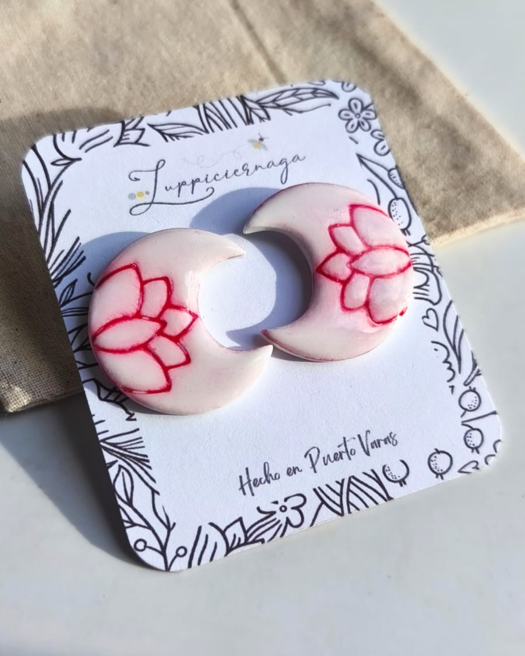 Aros diseñados y confeccionados a mano en arcilla polimérica. Cada par pasa por un proceso cuidadoso de modelado, horneado y ensamblaje, lo que da como resultado piezas originales y llenas de carácter.