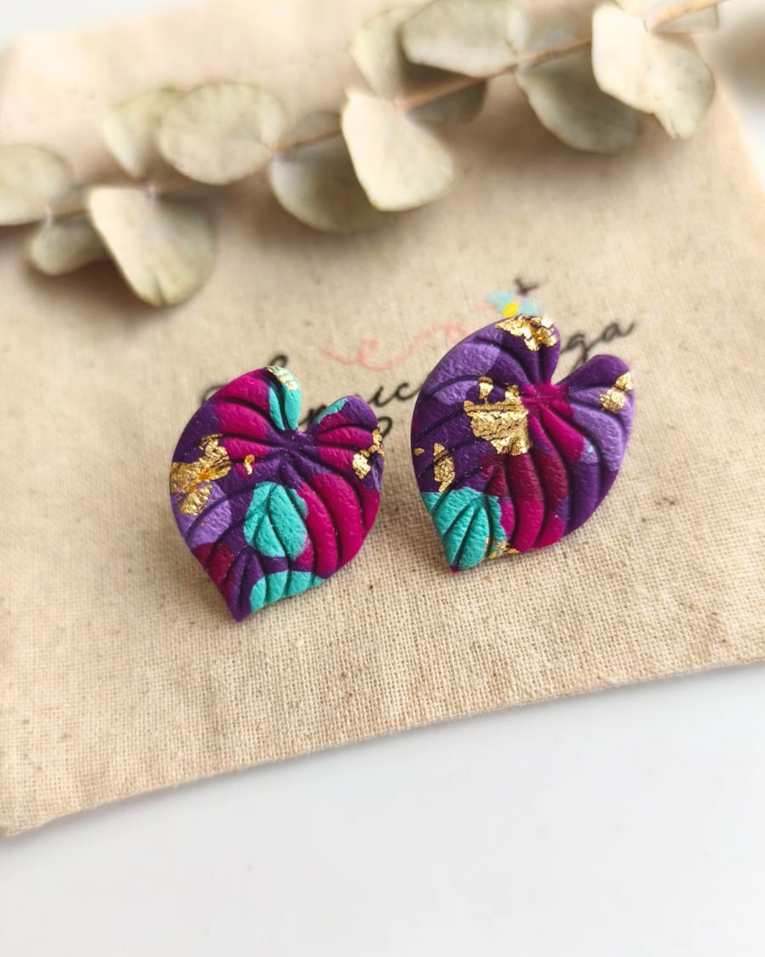 Aros diseñados y confeccionados a mano en arcilla polimérica. Cada par pasa por un proceso cuidadoso de modelado, horneado y ensamblaje, lo que da como resultado piezas originales y llenas de carácter.