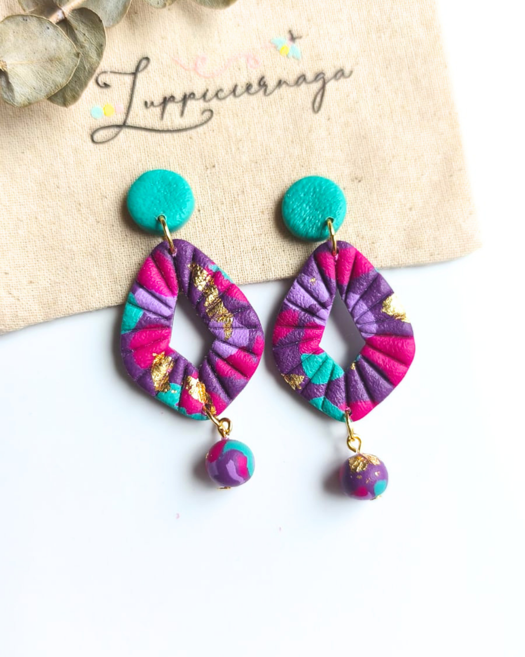 Estos aros hechos a mano en arcilla polimérica combinan elegancia y originalidad en una pieza única. Su diseño cuidadosamente trabajado destaca por sus tonos armoniosos y detalles delicados, ideales para complementar cualquier outfit, desde looks cotidianos hasta ocasiones especiales.