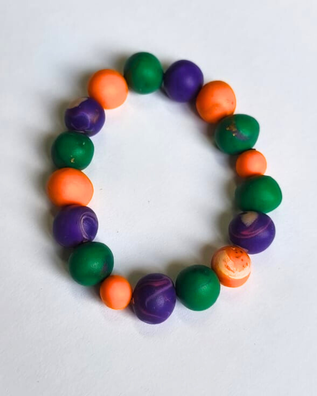 Pulseras artesanales hechas a mano en arcilla polimérica, diseñadas por Luppiciernaga. Piezas livianas, originales y únicas, creadas con técnicas de modelado artesanal que permiten combinar colores, texturas y formas exclusivas.