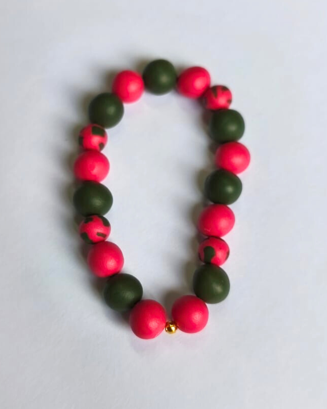 Pulseras artesanales hechas a mano en arcilla polimérica, diseñadas por Luppiciernaga. Piezas livianas, originales y únicas, creadas con técnicas de modelado artesanal que permiten combinar colores, texturas y formas exclusivas.
